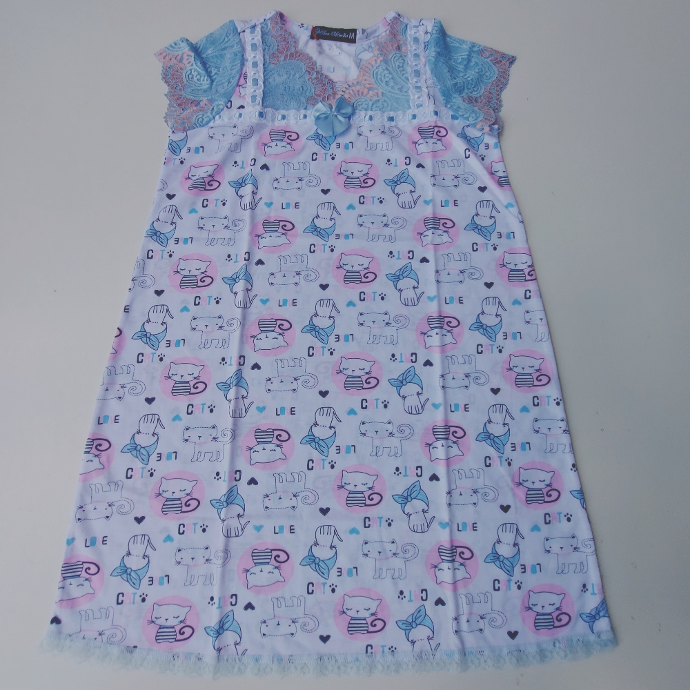 COR: Malha fundo branco estampa gatinha,Renda azul e Rosê Golden